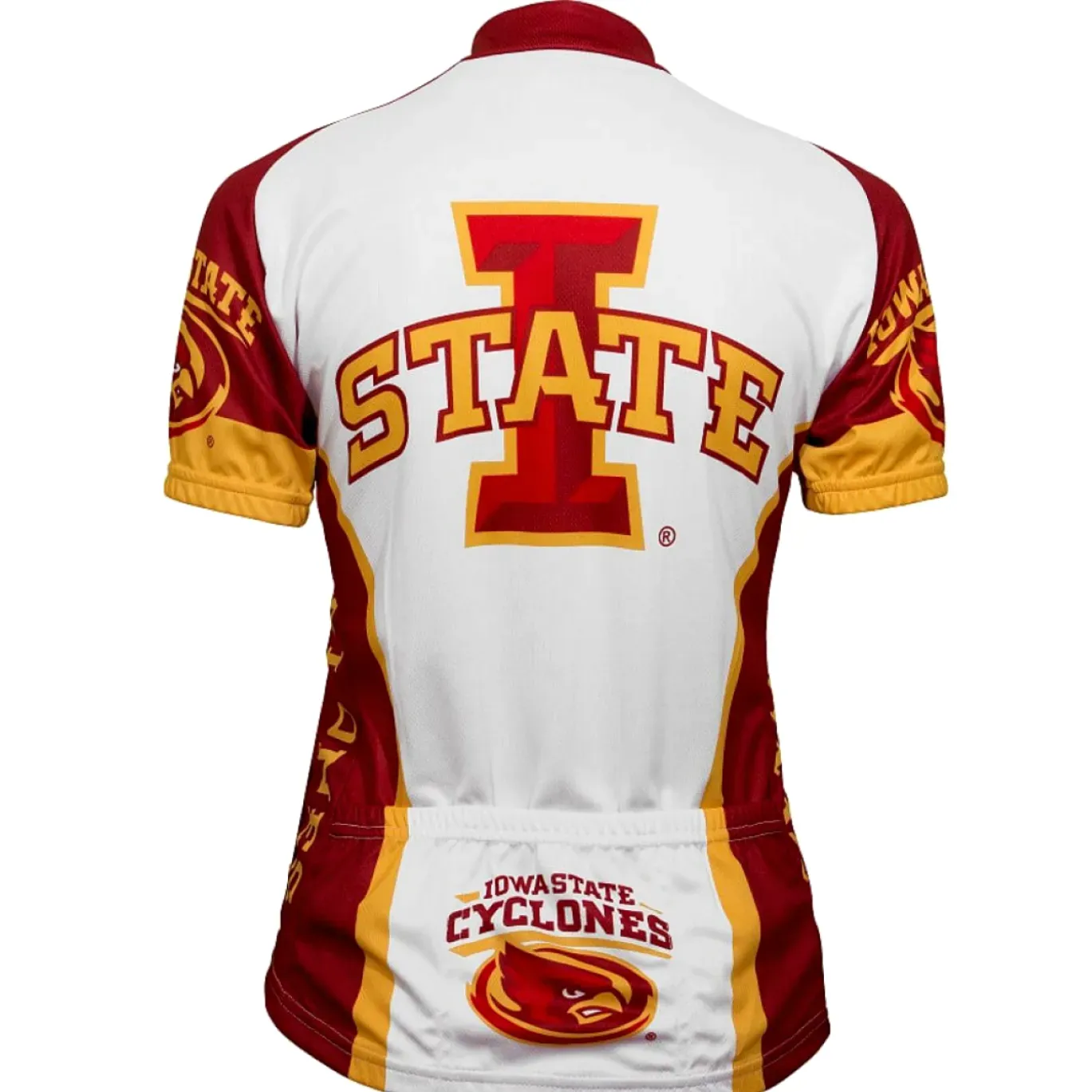 Show your Cyclones spirit with this Iowa State college cycling jersey. Designed for women athletes, it features a white and cardinal body with gold accents, including the iconic T-State logo across the chest. The raglan sleeve design adds a modern athletic touch.