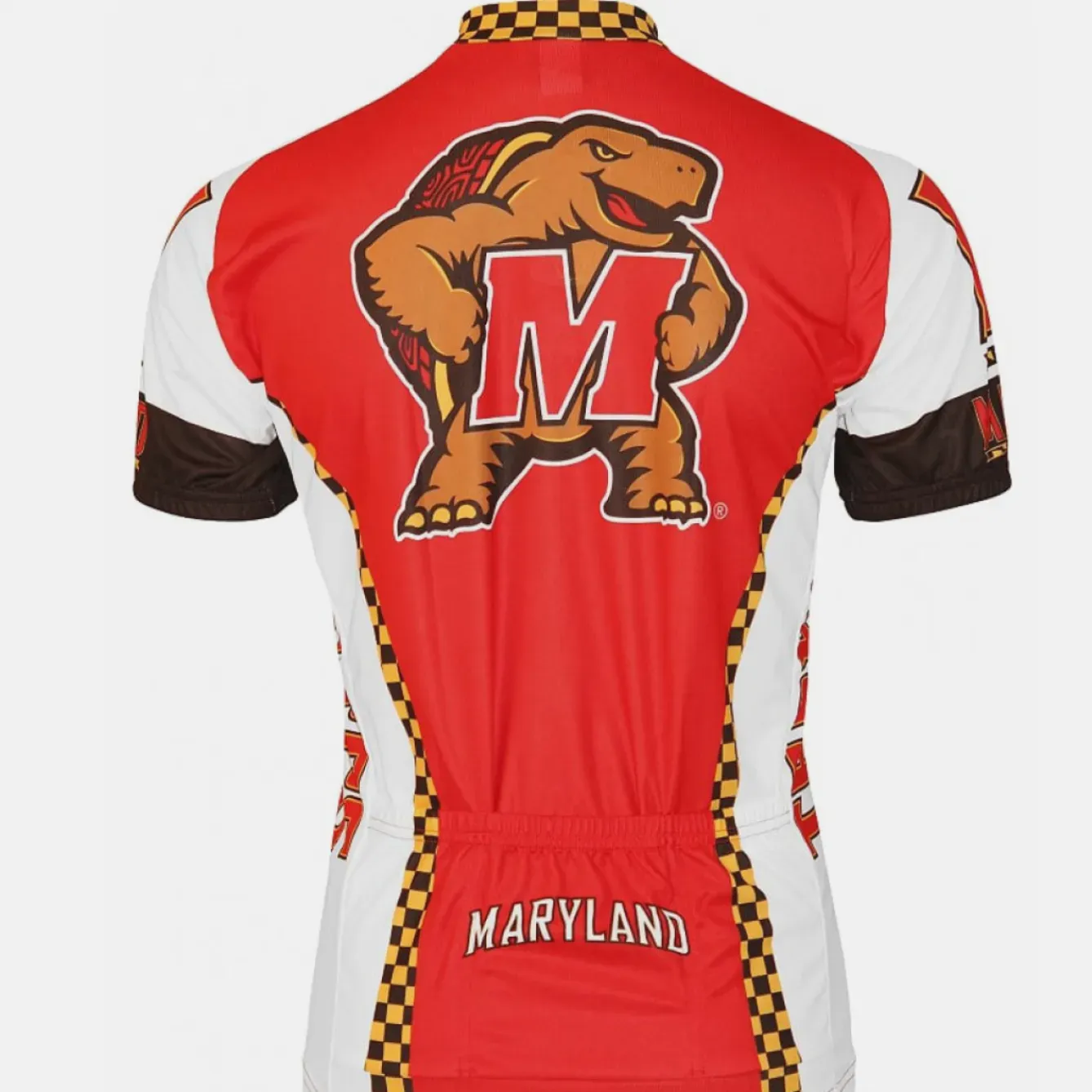 Represent your team with style and performance in this Men’s Maryland Cycling Jersey. The bold design features the iconic Terrapin mascot and university lettering on a classic red, white, and black color scheme. Perfect for weekend rides or collegiate events, this NCAA-licensed jersey combines comfort with spirited team pride.