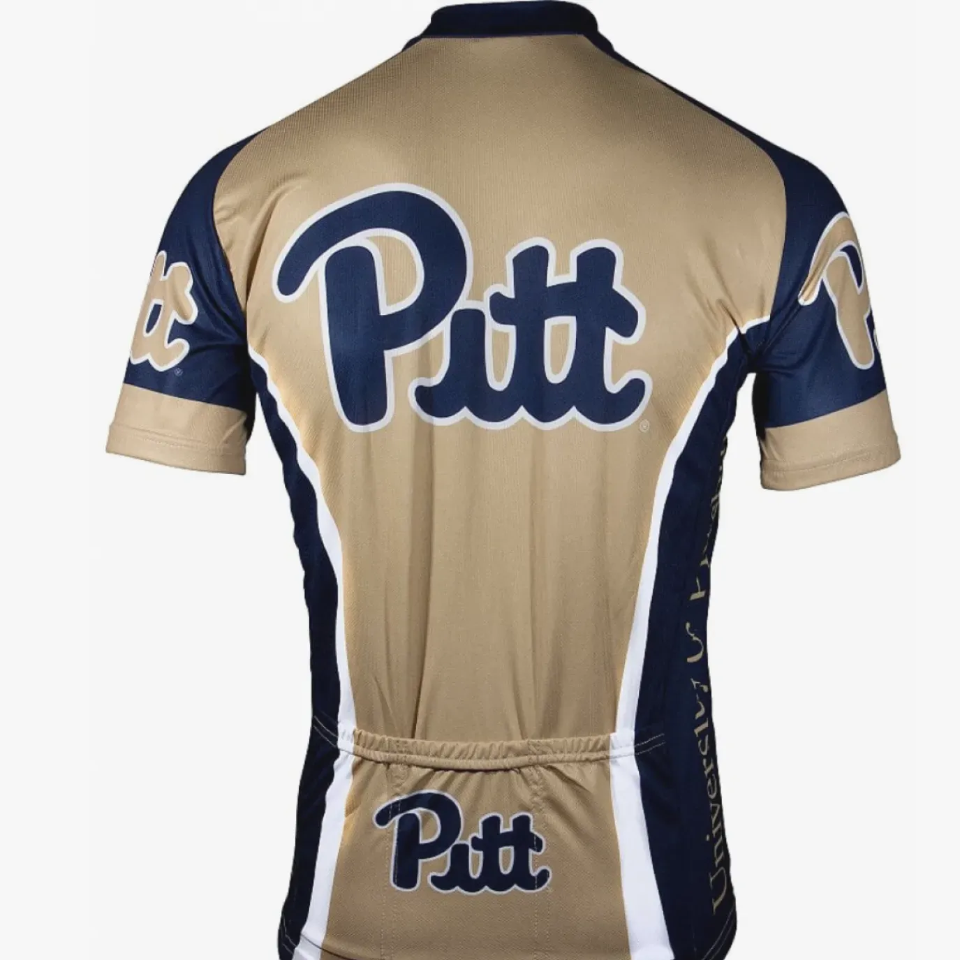 This official collegiate cycling jersey showcases the iconic Pitt Panthers branding with a bold, navy blue and gold design. It’s crafted for riders who want to represent their school spirit while enjoying comfort and performance on every ride.