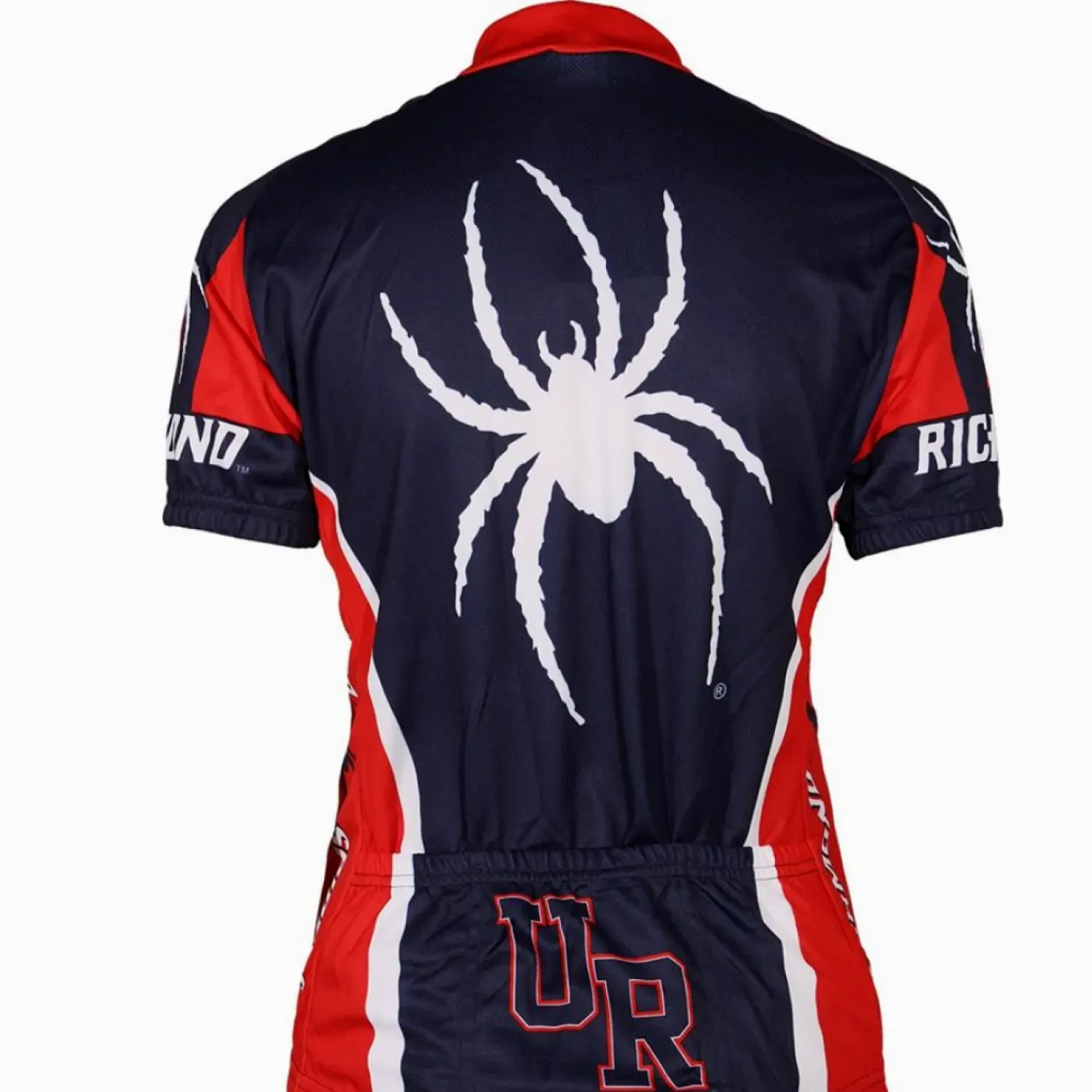 Show your team pride with this college cycling jersey from Adrenaline Promotions, proudly designed to support the Richmond Spiders. The striking design features navy blue and red panels, accented by white graphics and lettering.