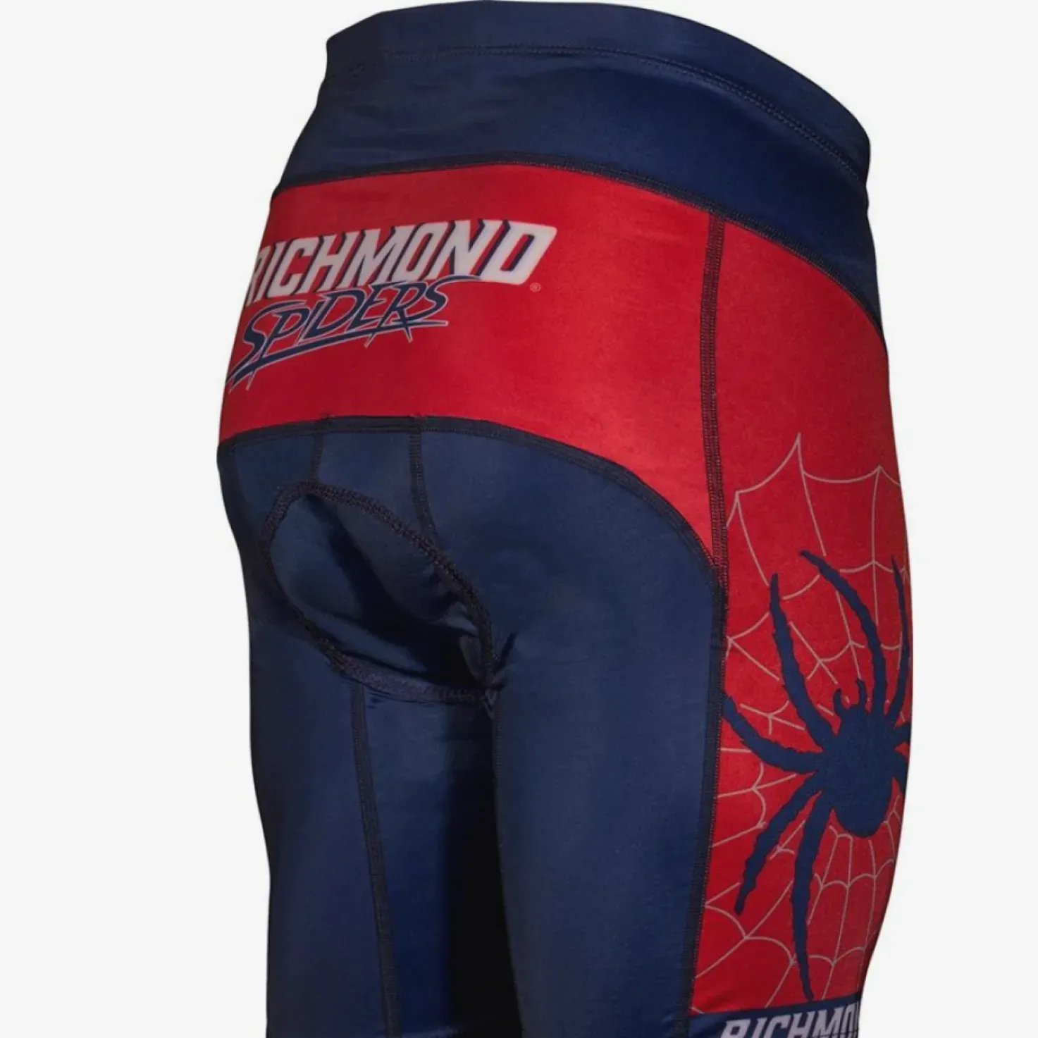 These Richmond cycling shorts feature a bold red and navy blue panel design, accented by a large spider graphic and web pattern. The athletic cut is designed to keep you comfortable during intense rides or group workouts.