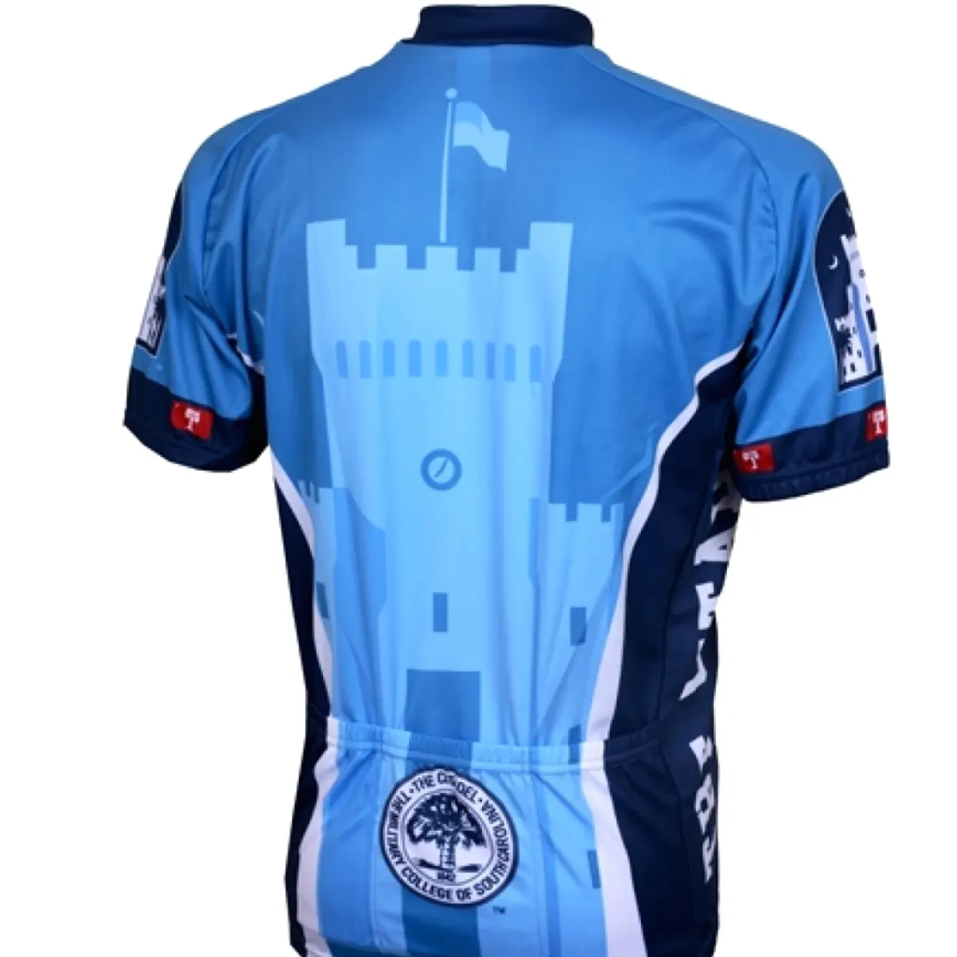 Show your team spirit with this official The Citadel college cycling jersey. Designed for performance and pride, the short-sleeved racerbike shirt features full sublimation printing and a bold university color palette. Ideal for both casual rides and serious training sessions.