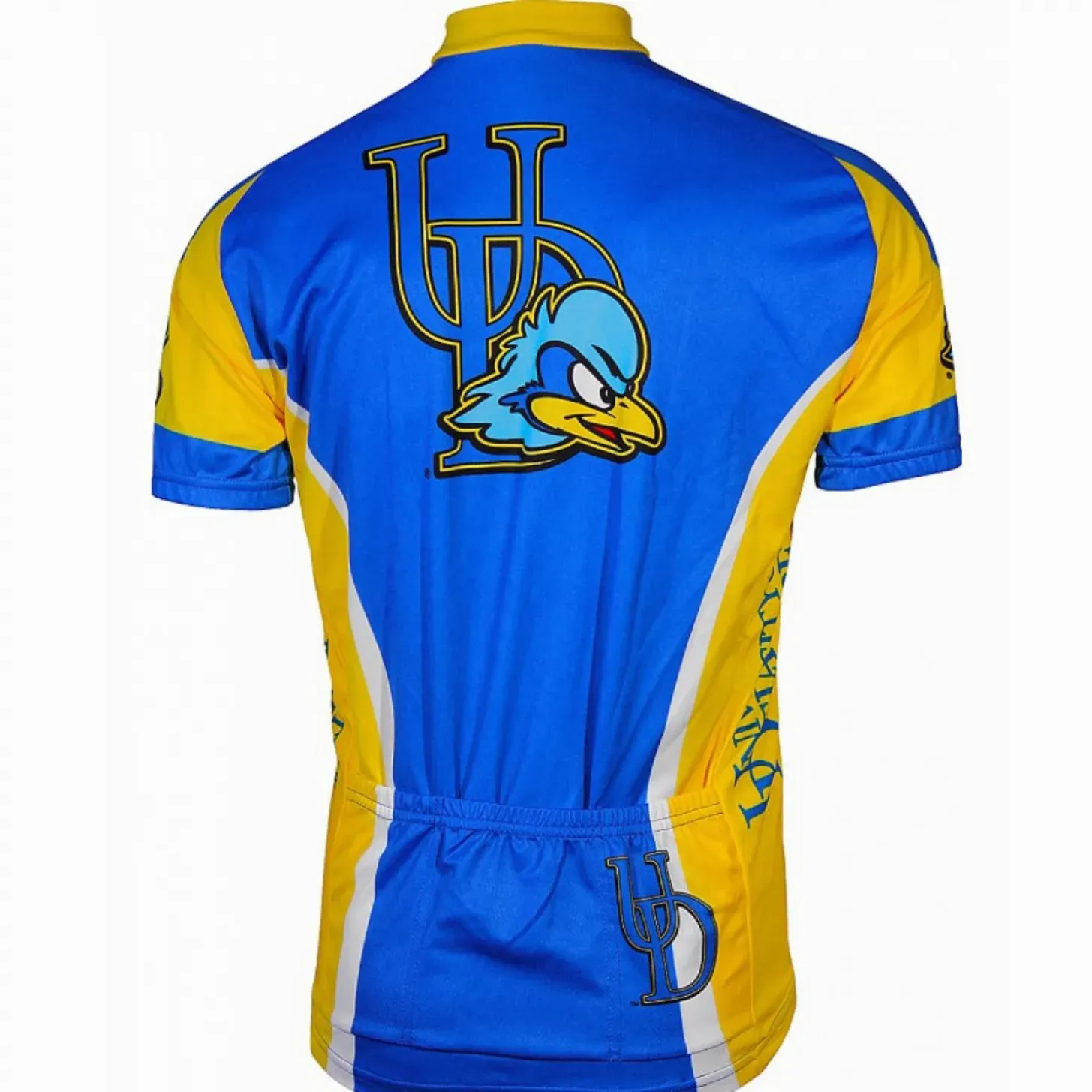 This men’s Delaware cycling jersey features a bold royal blue and yellow design with the university’s mascot prominently displayed on the chest. Perfect for dedicated riders who show their school pride, this NCAA-licensed jersey offers all-day comfort and functionality. Ideal for both casual rides and campus events, it combines classic collegiate colors with modern athletic styling to stand out on the road while supporting your favorite team.